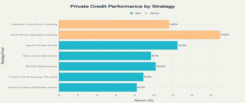 Private credit has delivered compelling risk-adjusted returns across multiple market cycles, significantly outperforming traditional fixed income alternatives. Recent data shows private credit closed-end funds posted a 6.9% annual return in 2024, continuing their multi-year outperformance streak.