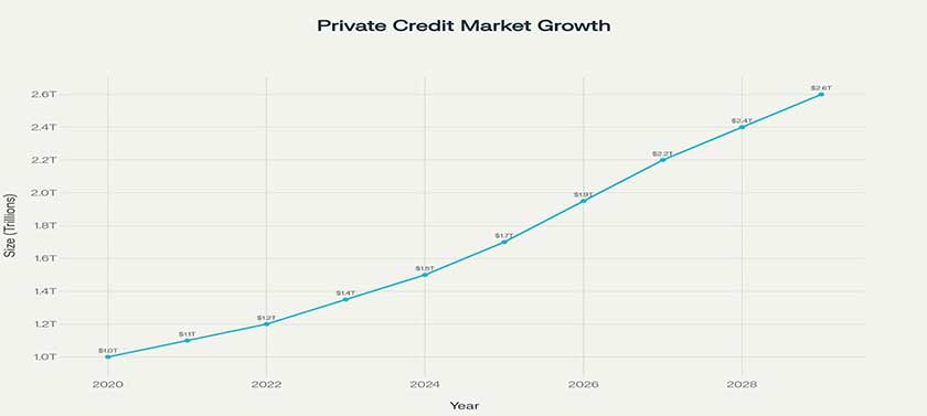 Market Expansion: The private credit market has grown from $750 billion in 2018 to nearly $2 trillion in 2024, with projections indicating continued expansion.