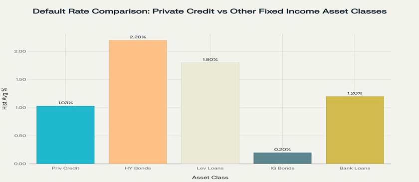 Credit Quality: Historical default rates of 1.03% are significantly lower than high yield bonds (2.2%) and competitive with leveraged loans (1.8%), while offering superior recovery rates of 68%.