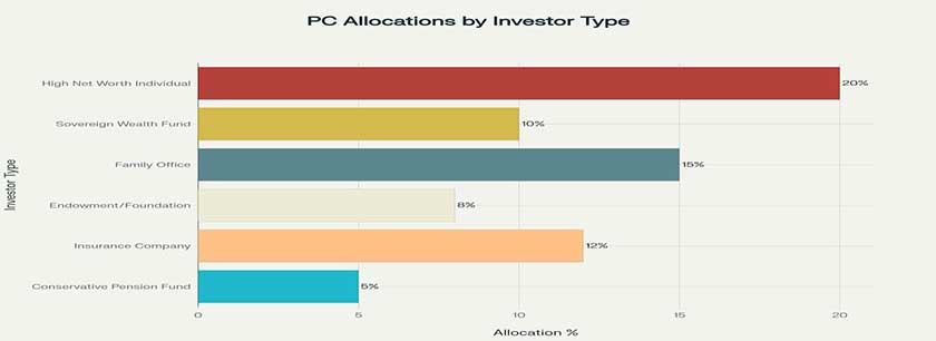 Private Credit Allocation Percentages Across Different Types of Institutional and Individual Investors