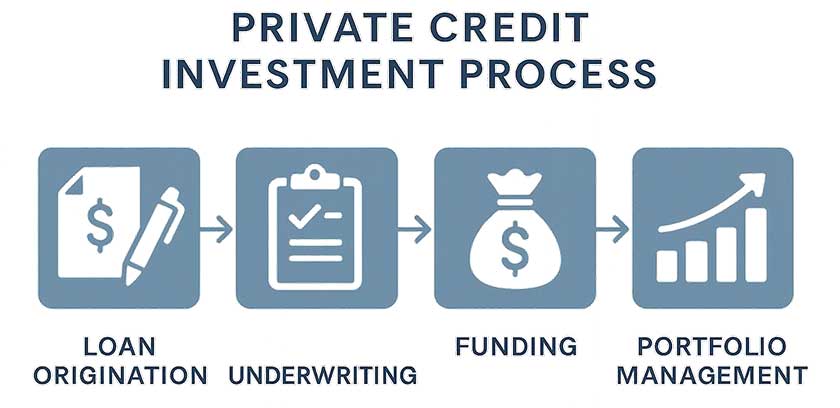 The private credit investment process involves multiple stages of analysis and risk assessment, requiring specialized expertise and resources. Private credit managers rely on established networks to source investment opportunities, typically working with private equity sponsors, investment banks, and management teams.