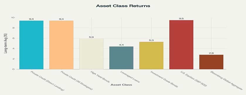 Long-term Average Annual Returns: Private Credit vs Other Asset Classes